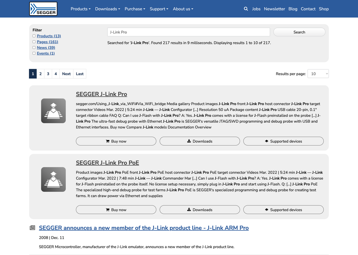 Existing contents: The current page and content structure, especially in the product area, was reviewed. SEGGER has significantly revised or rewritten some of the content.